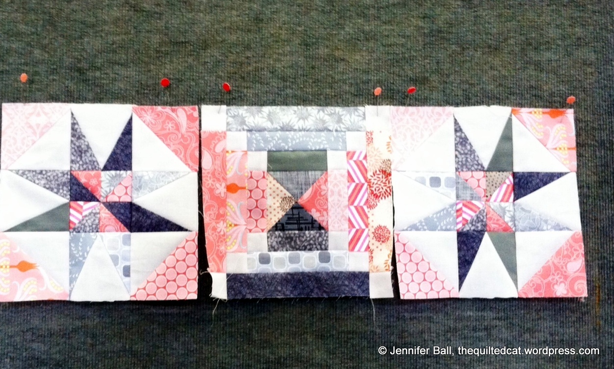 Smith blocks Published June 11, 2014 at 1251 × 751 in Bonnie Hunter Workshops! Smith Mountain Morning – 2 star blocks and 1 log cabin block