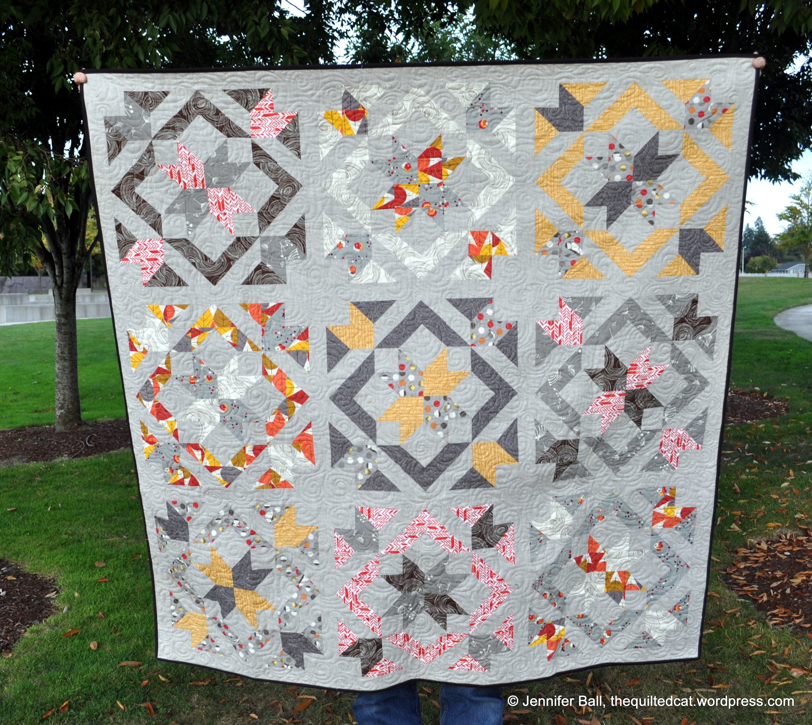 Lovely quilt and the quilting is great! It will be perfect in your sister’s log home!!
