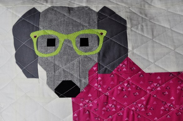 I’ve been working on making a small version of the new Dogs in Sweaters pattern by Elizabeth Hartman. After I finished making the 4 dog blocks (post to come soon!) using plaid fabric for the dog sweaters, I decided to make another dog using bright colors in the pillow size.