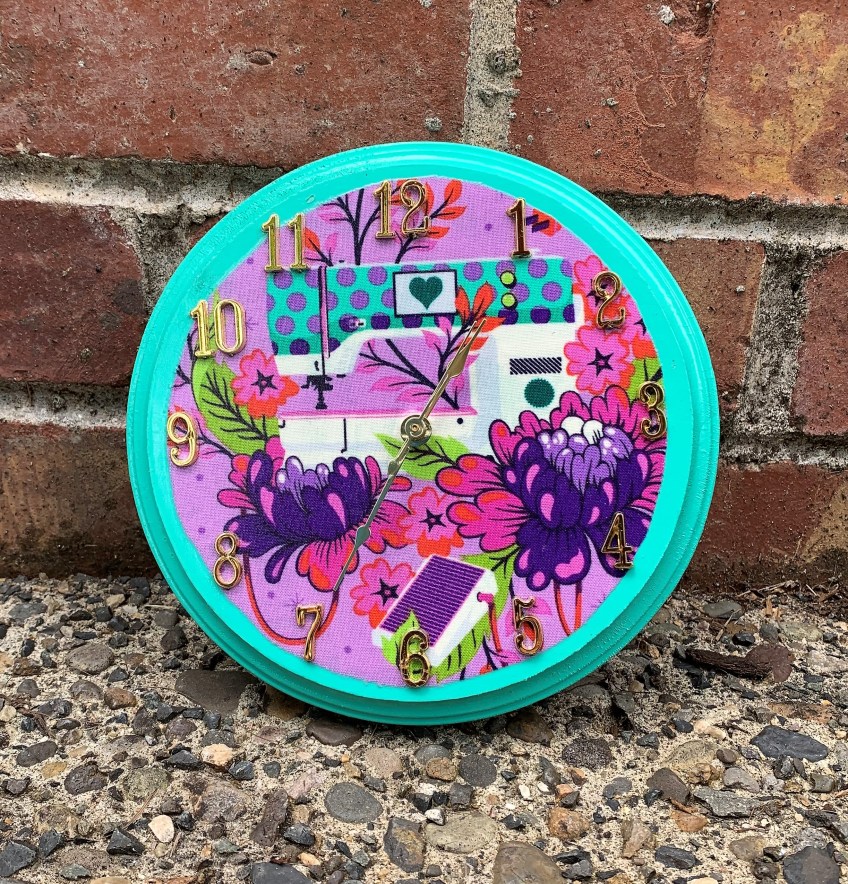 Tula_clock Published June 23, 2020 at 2445 × 2551 in Making a Tula Pink Themed Clock for My Sewing Room Finished Tula Pink HomeMade “Sewing Machine” Clock
