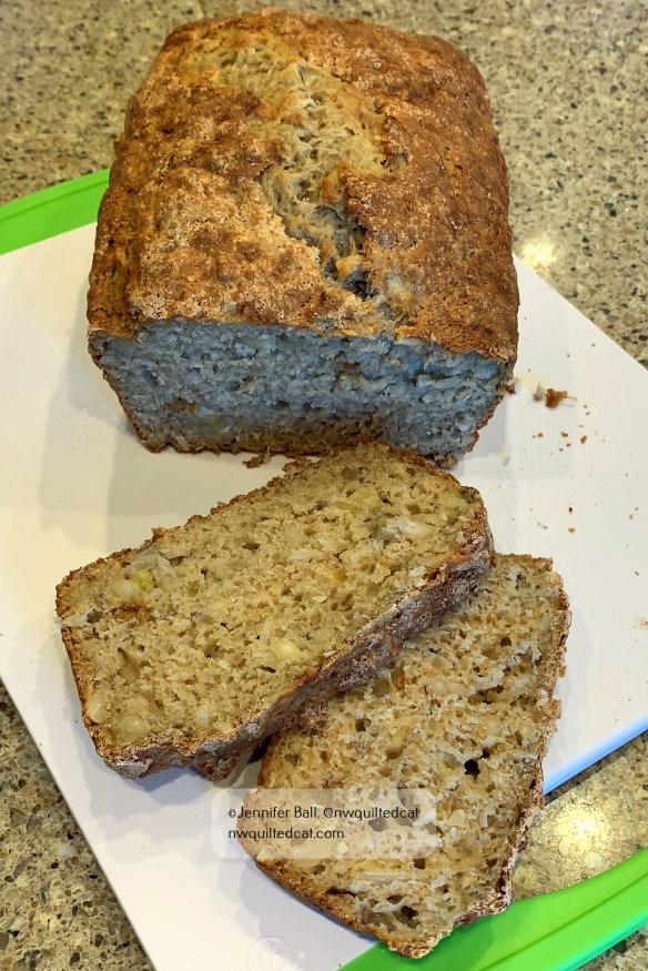 I made some banana bread using some sourdough starter that turned out delicious so I’m sharing the recipe with you. I’m calling it “Hawaiian style” because it reminds me of some banana bread that I purchased at a road side stand in Hawaii a few years ago.