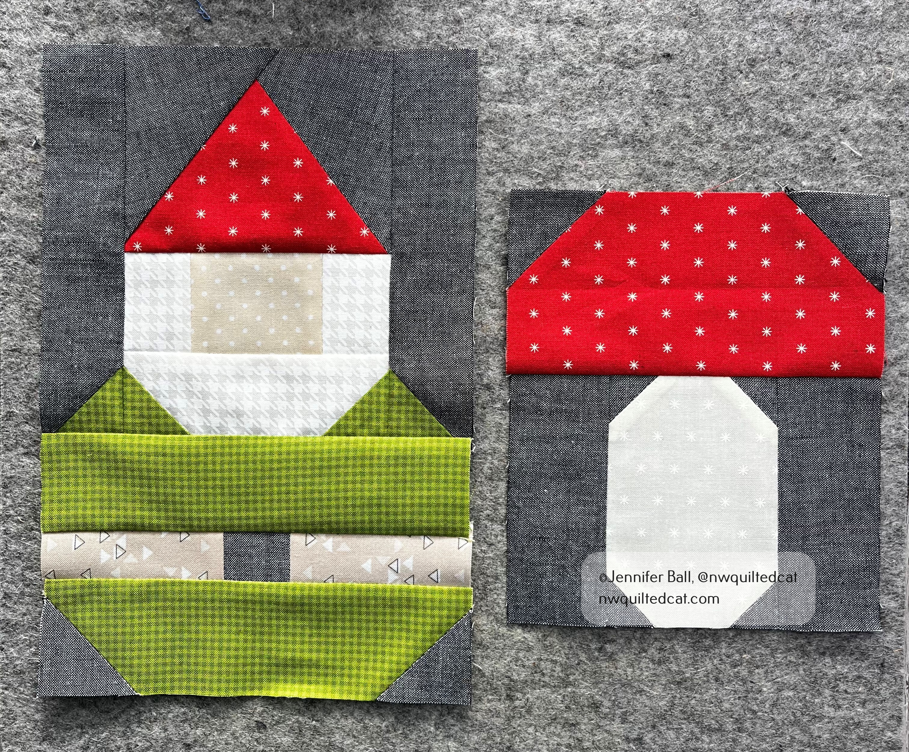Gnome block and mushroom block from the Woodland Wonderland quilt