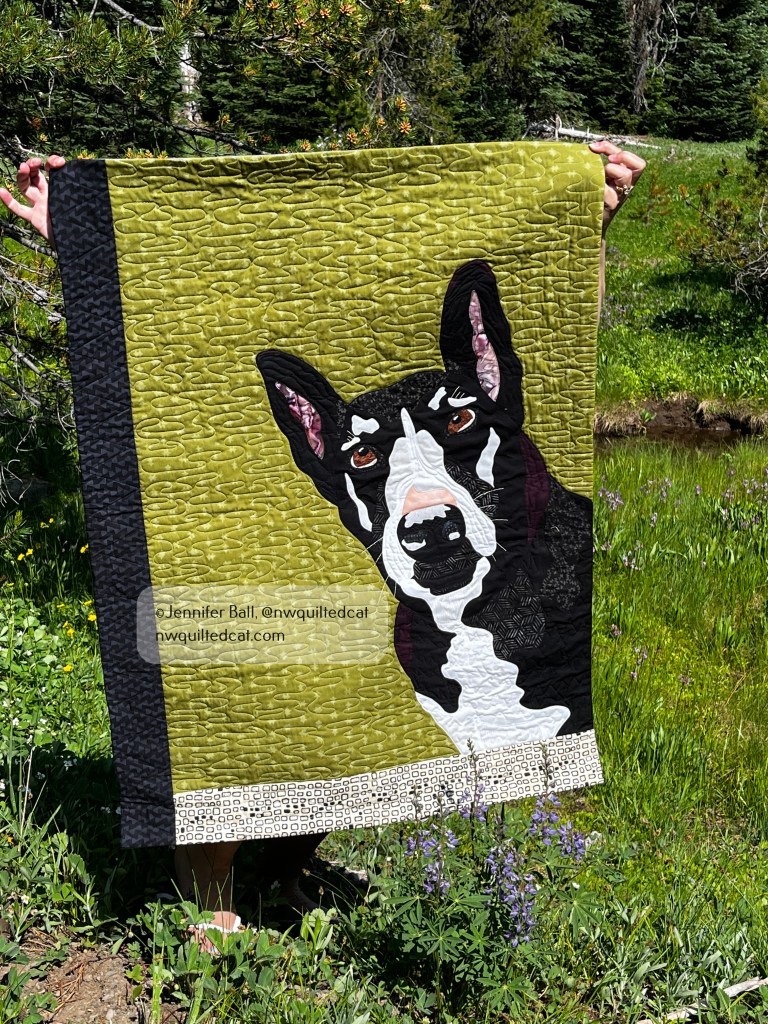 Last year, I had the wonderful opportunity to take a 3-day class at the Stitchin Post in Sisters, Oregon with the amazing June Jaeger. The class focused on creating pet portraits out of fabric and fusible web. I decided that I really need a pet portrait quilt of my best girl!
