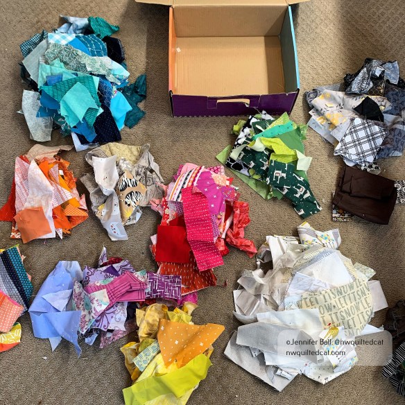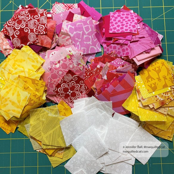 Aren’t they cute? When I pieced the units together, I didn’t worry about having 2 of the same fabrics touching each other. There is so much movement in the finished quilt that no one will notice!
