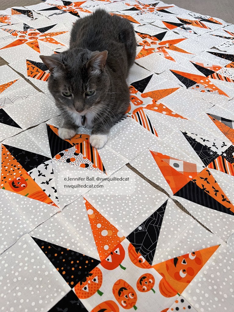 Here’s a look at my completed Black Diamonds quilt, Halloween style!!