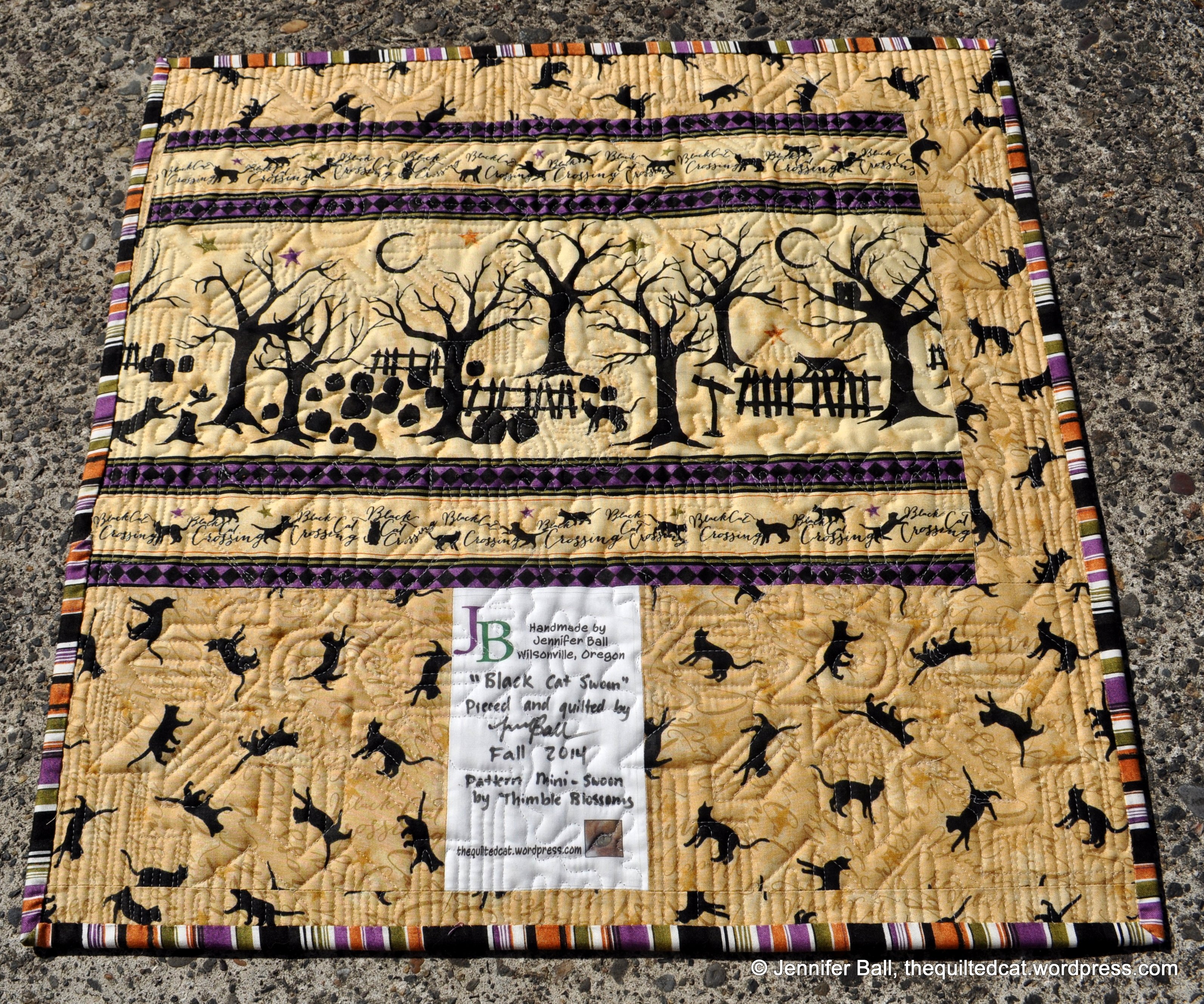 I modified the pattern slightly so that I could add the Black Cat Crossing border fabric in between the swoon blocks. I’m calling my finished mini quilt, “Black Cat Swoon!”