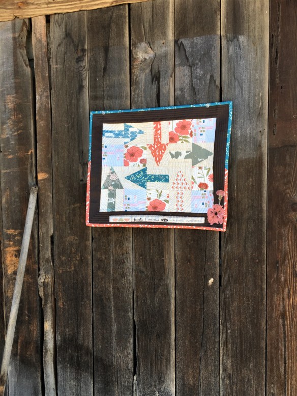 My entry is called “Bounty in Every Direction” and is inspired by all the wonderful farms and ranches that I’ve seen while flying. The arrows are my own foundation paper-pieced design. I used free-motion quilting in a circular shape to represent the center-pivot irrigation system used on many crops.