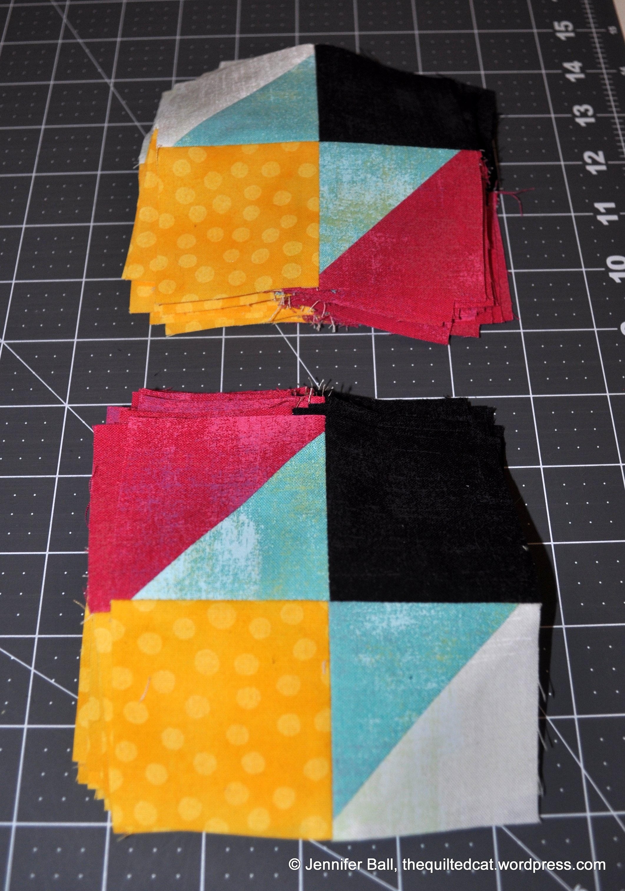 This block came together pretty quickly. If you’re using directional fabrics, be careful how you place the reds/pinks and whites so they are all facing the same direction.