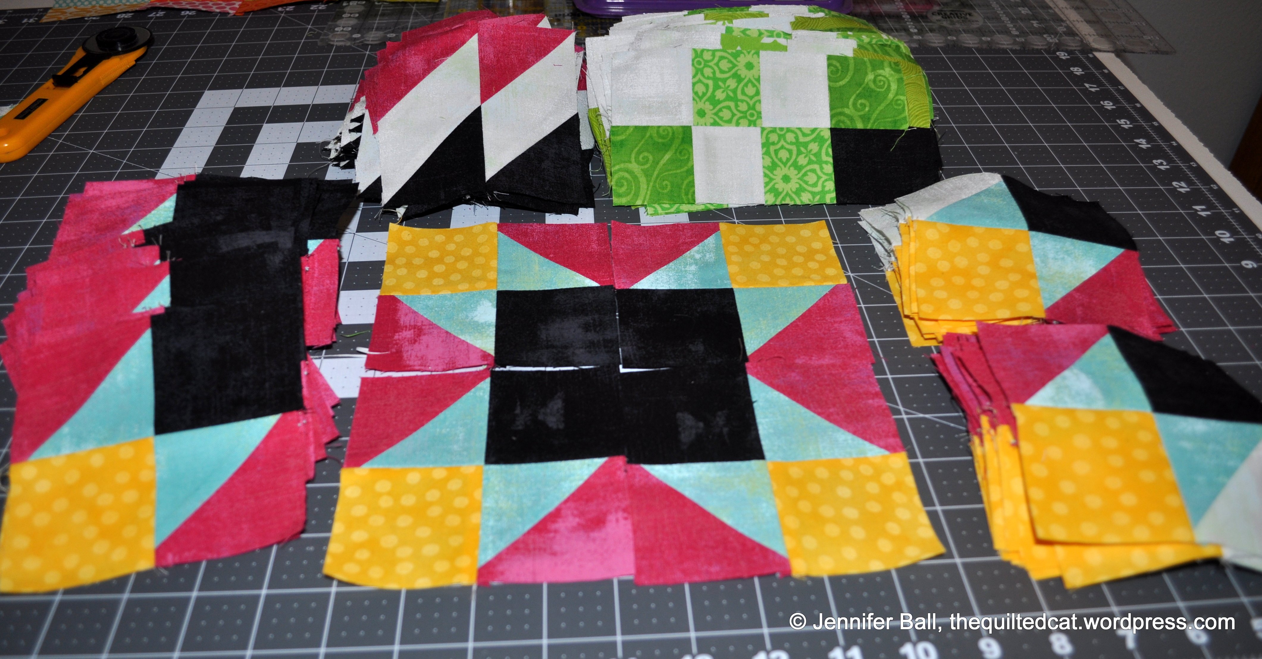 I finished up part 4 of the Grand Illusion mystery quilt, hosted and designed by Bonnie Hunter. For part 4, we made 2 different Broken Dishes units.
