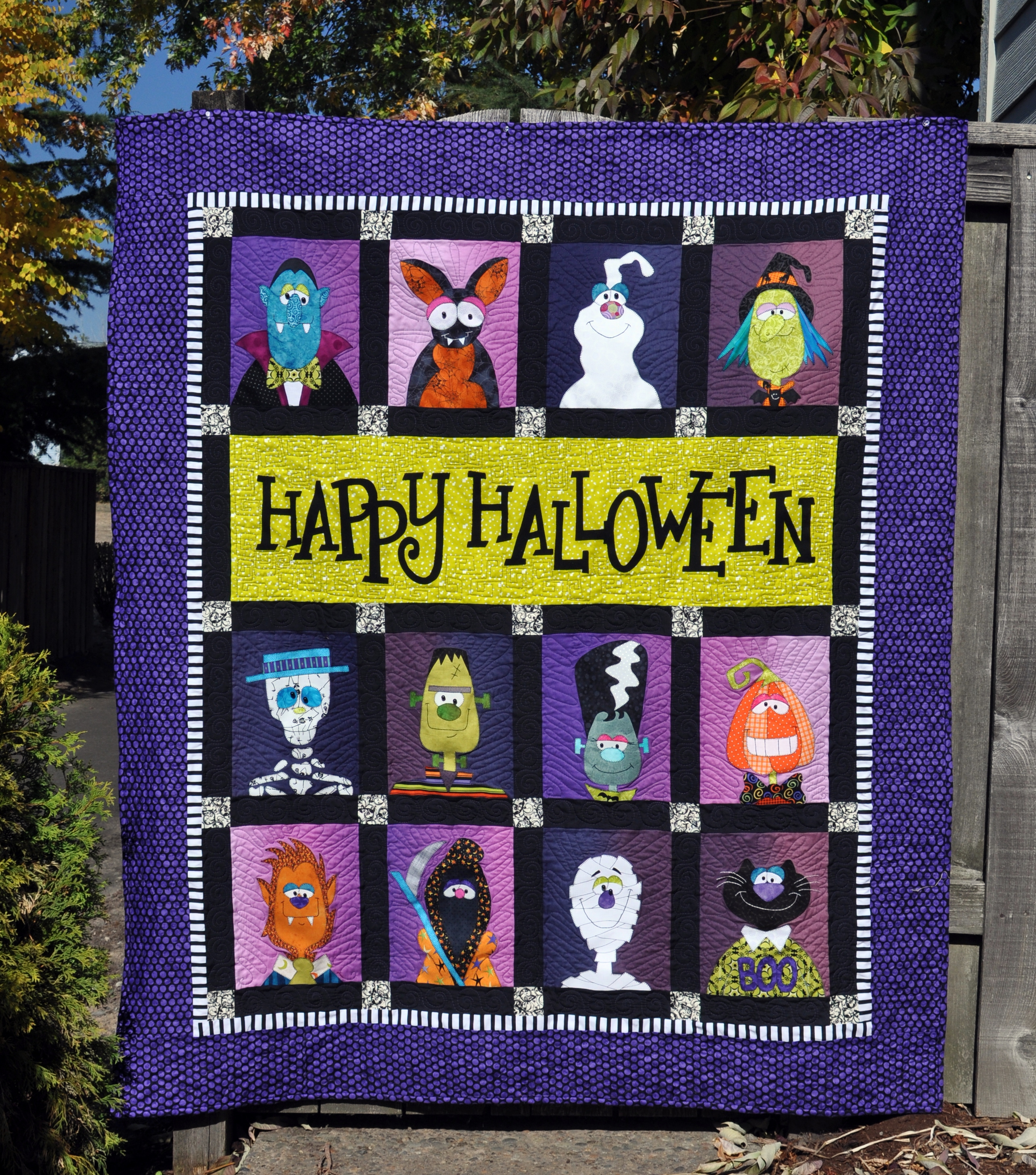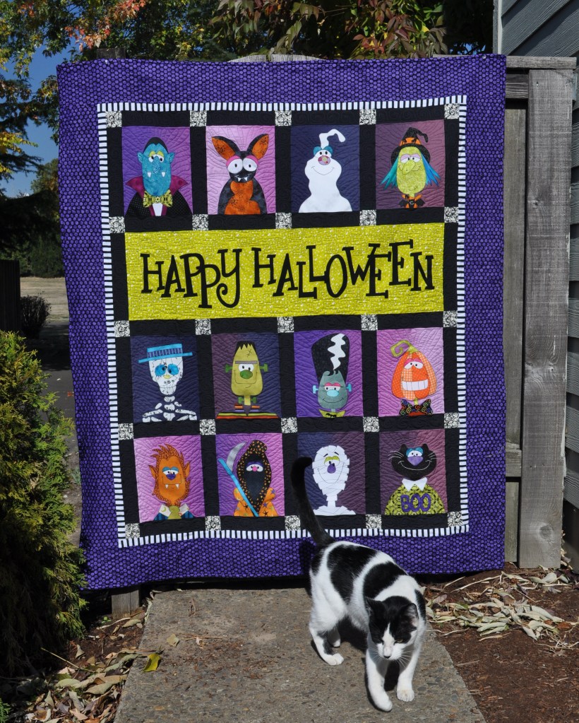 Yippee – I recently completed the final row in my “Happy Halloween” quilt designed by Amy Bradley. This final row features 4 adorable little critters! They are without their eye buttons for now, but I hope to be able to get the whole thing quilted this weekend.