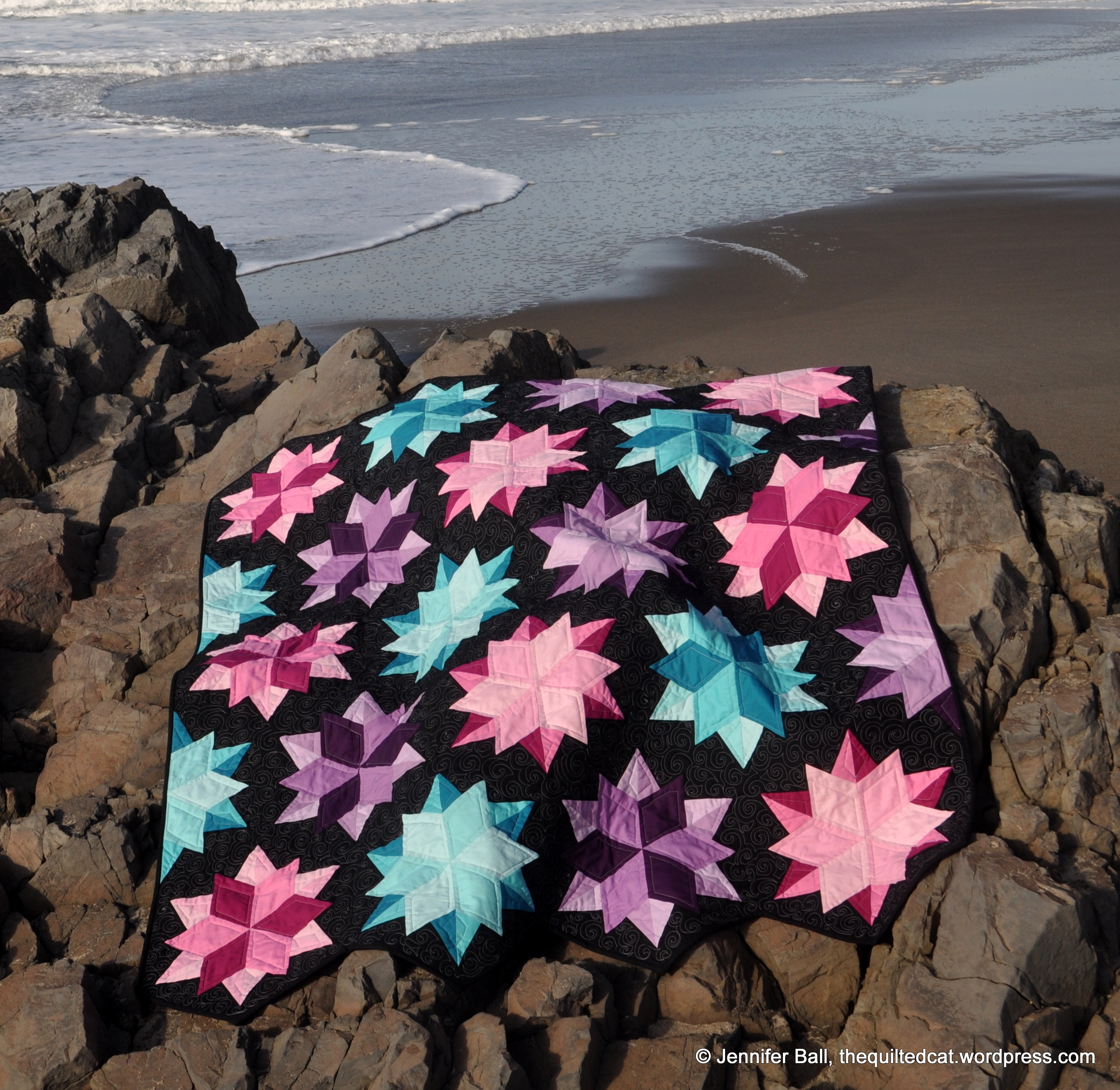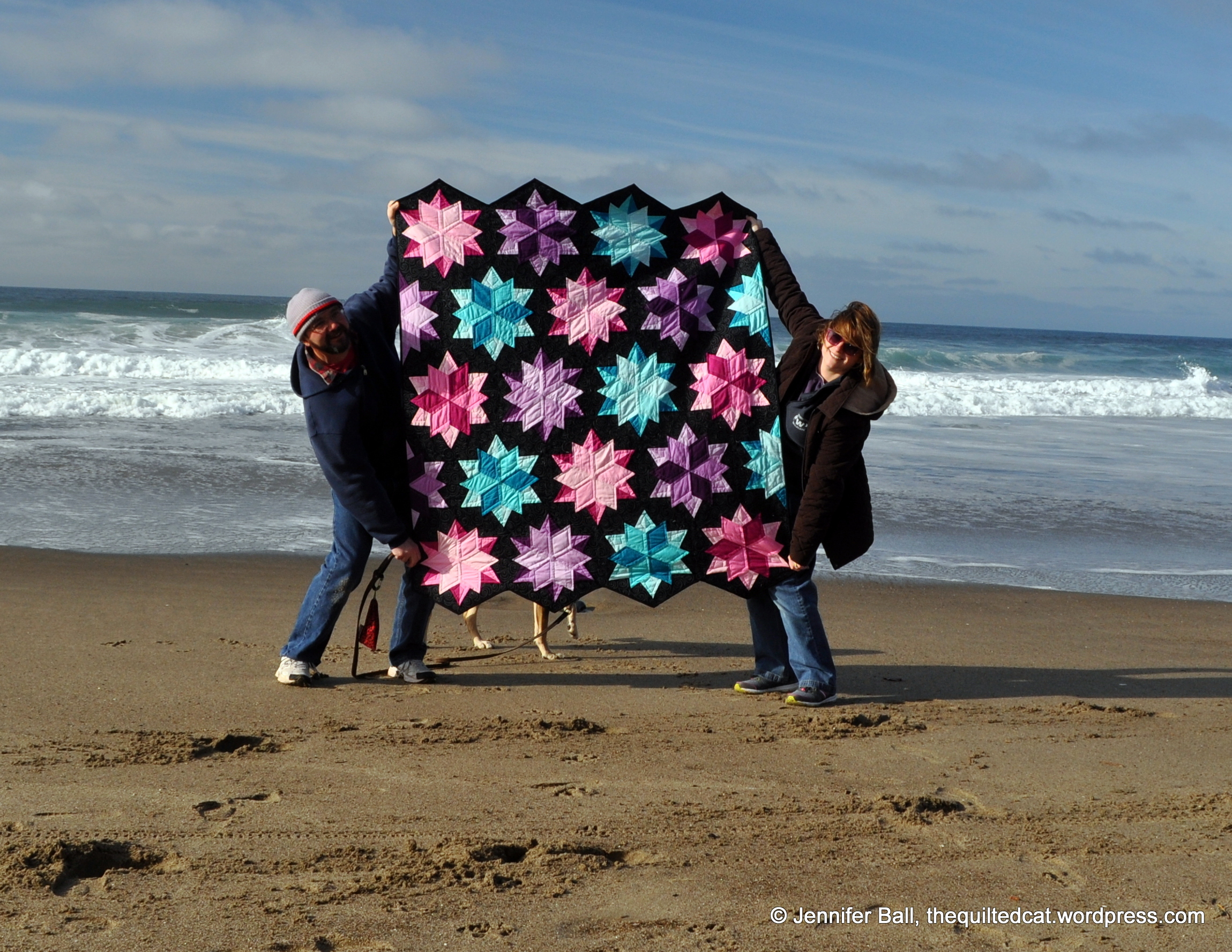 We took the finished quilt to the beautiful Oregon Coast this weekend to take some photographs. I had my hubby and son be my scouting location/photography assistants, and I think they did a wonderful job.