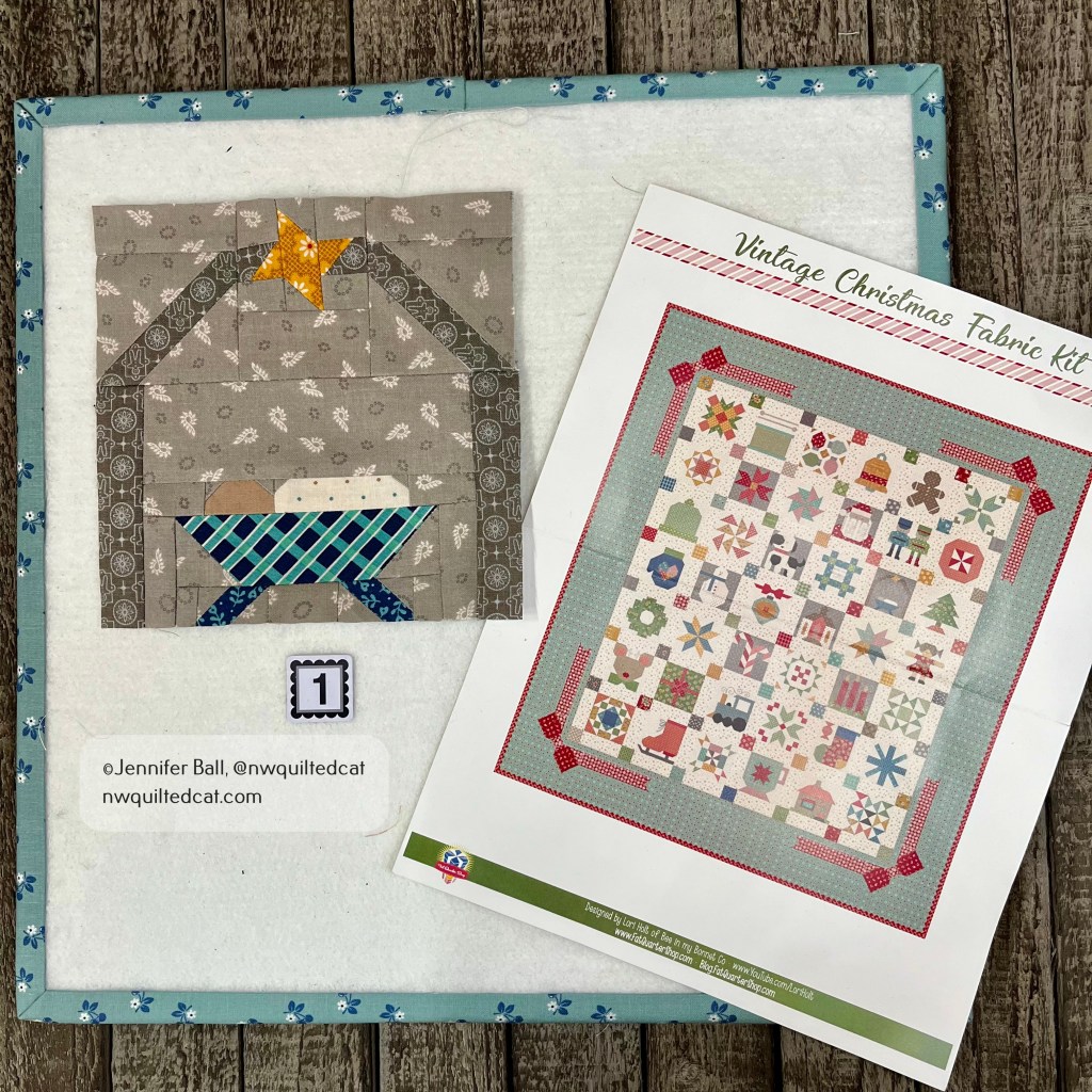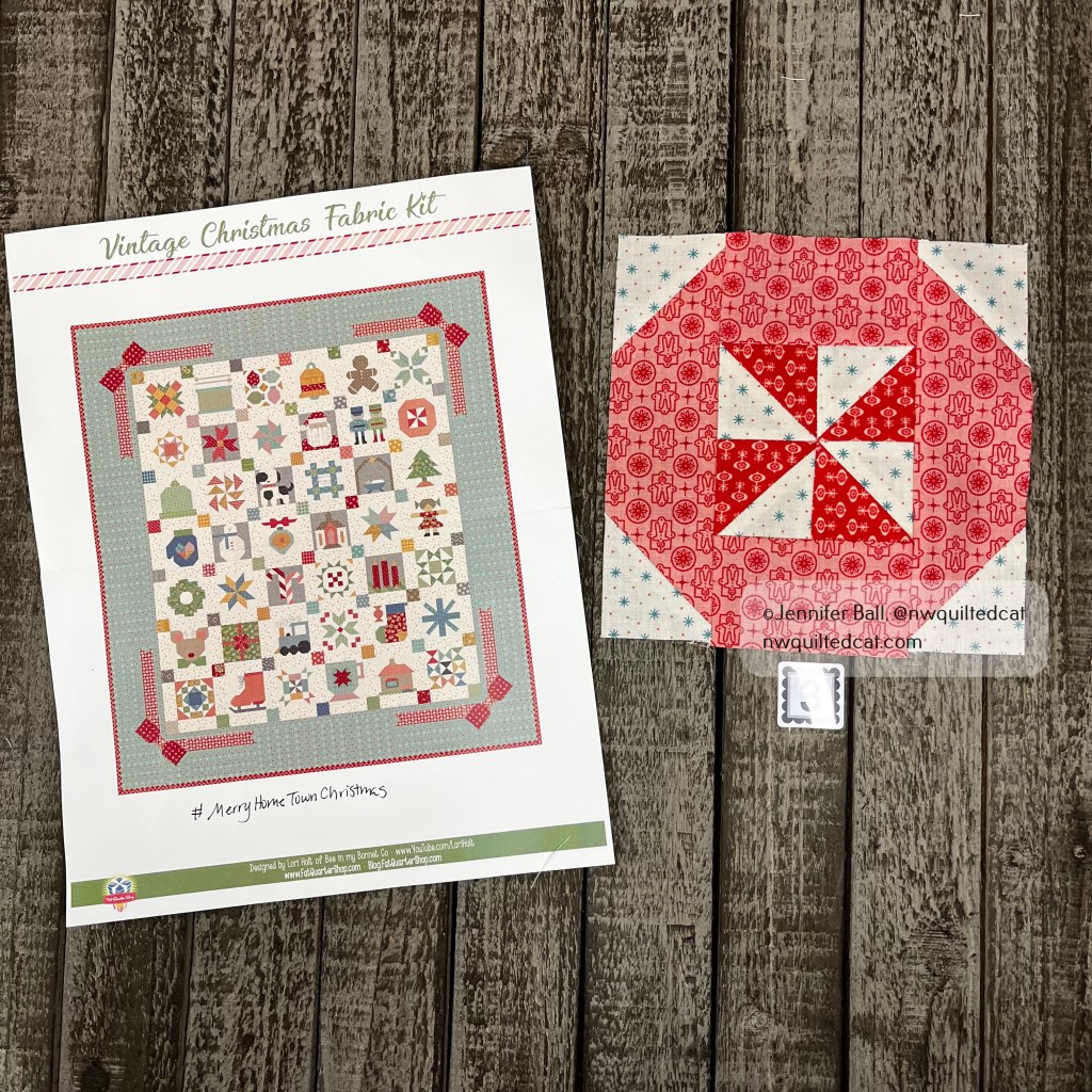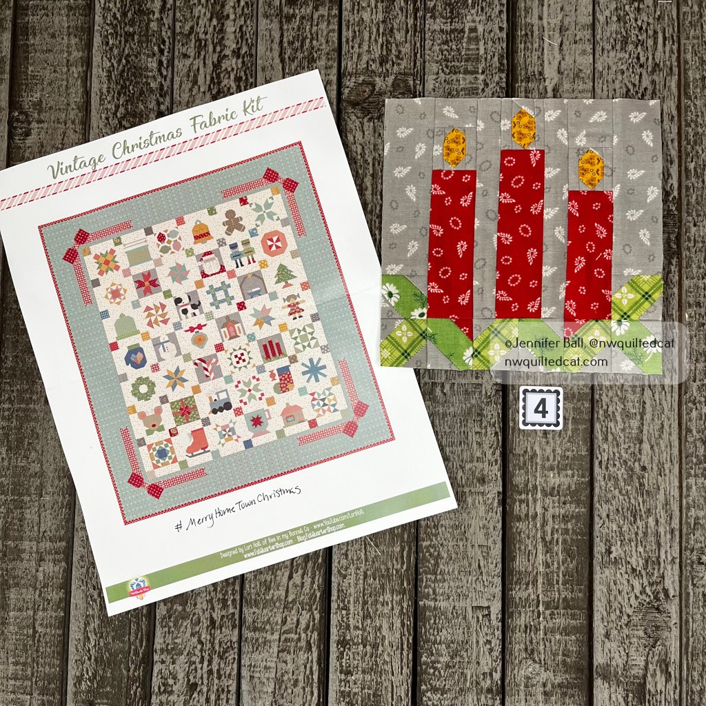 This block is 12″ and is a combination of traditional piecing and applique.