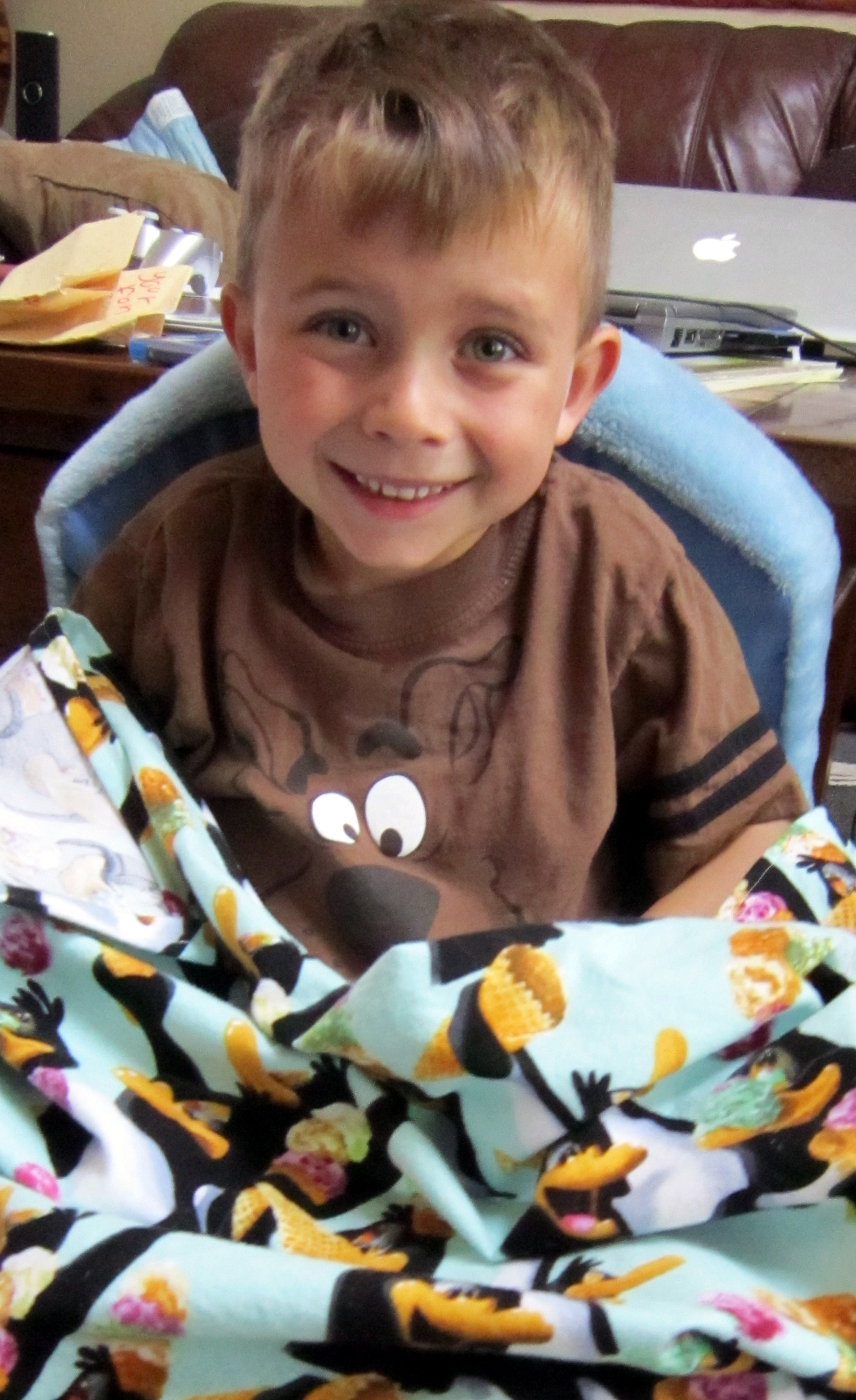 My almost 7-year-old son asked me recently if I could make him a new cuddle blanket for traveling and going to grandma’s house. I agreed. He then gave me very specific requirements: it must be soft and it must have birds on it! So off to the fabric store I went in the hunt for fabric.